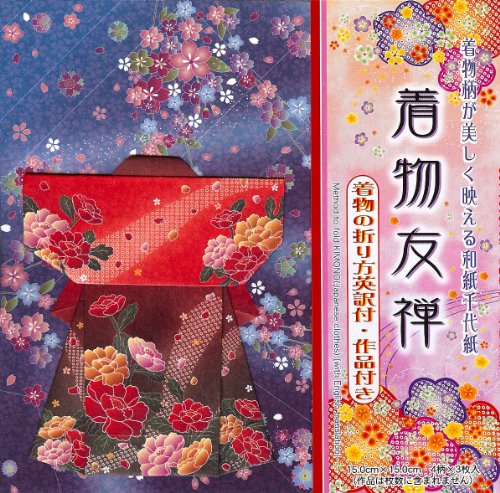 -. Feature : 6" (15 cm) square Kimono P.R.Int origami paper / 4 different patterns / 3 sheets / 12 sheets total / Sample of folded kimono included