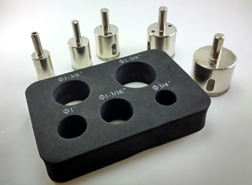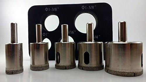 Precision Diamond Tools 5 Diamond Dust Hole Saw for Tile / Glass/ Marble / Granite / Ceramic / Porcelain / Stone Holesaw 3/4", 1", 1-3/16", 1-3/8", 1-5/8" Electroplated Diamond Drill Bits