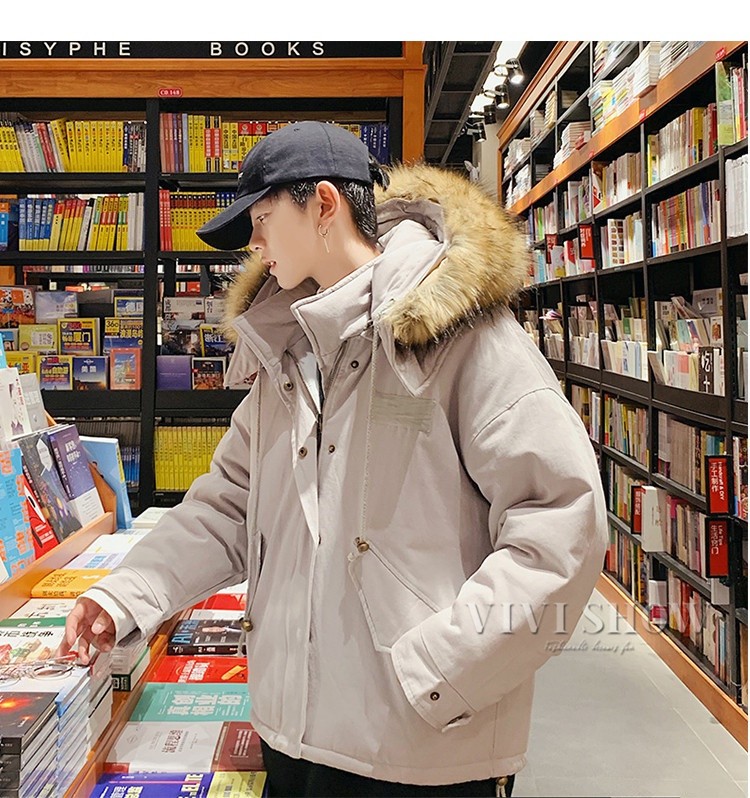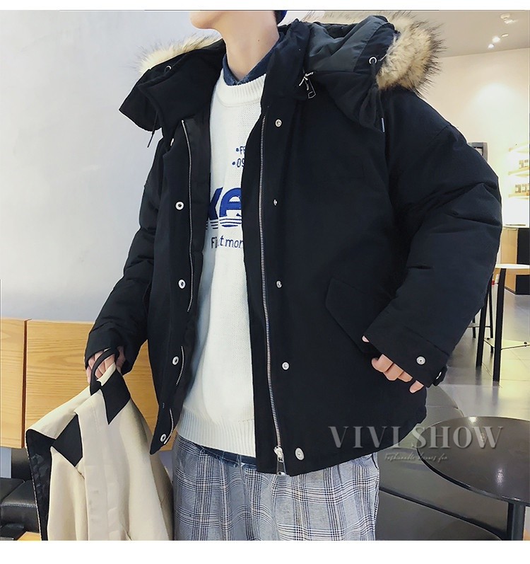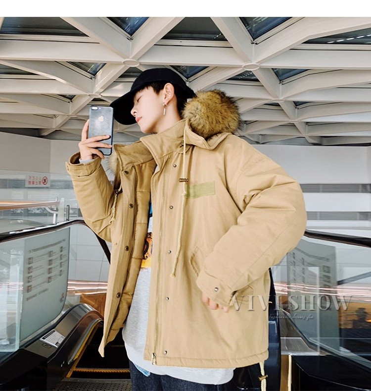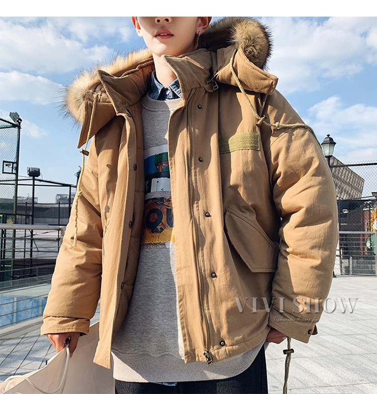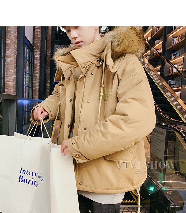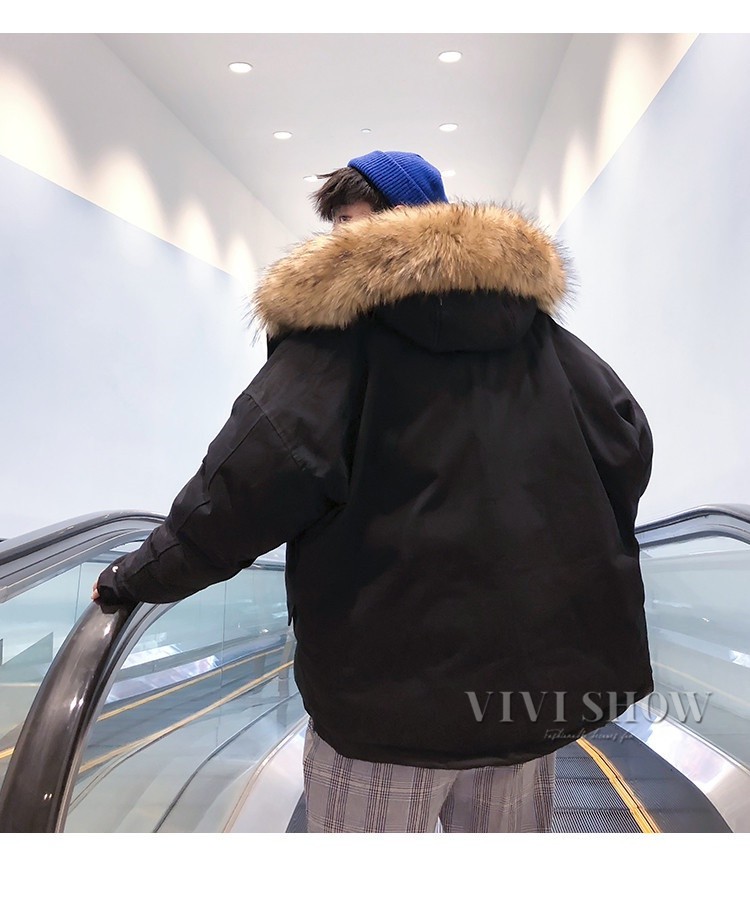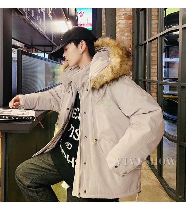 毛皮の襟 フードつきコート ジャケット メンズ ダウンコート コットンコート カップルウェア vivishow