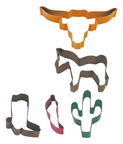 R & M Set of 5 Southwest Themed Cookie Cutters: Longhorn, Horse, Cactus, Cowboy Boot and Pepper Gift Packaged