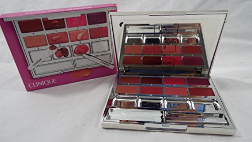 Studio : Clinique Publisher : Clinique Binding : Misc. Product Description Clinique Pretty Easy Lip Palette 8 Colors Brush, Spatula, Mirrored Compact $44.50 Value! New in Box! 8 shades of the lip colors are in one palette.- Create custom lip looks for any outfit and any occasion with this portable, do-it-yourself lip palette.- Featuring four shades of Long Last Soft Matte Lipstick and four shades of Butter Shine Lipstick.- You can easily build your own custom shade or use each on its own.- The palette features a mixing well and retractable, antibacterial lip brush for application ease.- Long Last Soft Matte Lipstick: Pink Chocolate, Vintage Wine, Matte Magenta, Matte Plum.- Butter Shine Lipstick: Baby Baby, Pink Goddess, Pink-a-Boo, Raspberry Rush- How to use: Apply any shade using the retractable lip brush. To create a custom shade, use the brush to pick up a color from the first row and dab into the empty mixing well.- Wipe the brush clean, then repeat with a color from the second row.- Blend together, then apply.- There are no rules-mix-and-match to your lips' desire.- TOTAL POIDS NEW WT. 0.14 OZ. / 4 g - Comes in Clinique original gift box. - New and unused in the original package. - 0