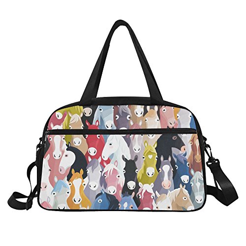 (InterestPrint)/Accessories/Luggage, Bags Travel/DIRECT FROM USA/InterestPrint Colourful Cartoon Horses Duffel Bag Travel Tote Bag Handbag Luggage