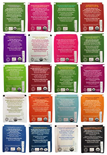 -. Binding : Misc. -. Brand : Pukka -. EAN : 0749995845301 -. Feature : Sampler pack includes 40 individually wrapped USDA Organic Pukka tea bags. / Discover your favorite tea and try new flavors without having to buy a whole box of each kind. Great variety pack for everyone to share and enjoy! Perfect for the home, office and makes a great gift. / All individually wrapped tea bags are new, hand-picked and shipped loose in a box (not in manufacturer's packaging). Box style and size may vary slightly from picture. In rare cases, based upon availability certain flavors will be replaced with other flavors. / Pukka tea sampler includes 2 of each of the following flavors: Night Time, After Dinner, Cool Mint Green, Three Fennel, Star Anise & Cinnamon, Detox, Cleanse, Love, Vanilla Chai, Three Tulsi, Elderberry & Echinacea, Matcha Green, Serene Jasmine Green, Rooibos & Honeybush, Three Mint, Clean Green, Three Cinnamon, Womankind, Three Ginger, and Chamomile Vanilla & Manuka Honey. / Includes The Curated Pantry gift tag to make gift giving easy and convenient. -. IsAdultProduct : 0 -. NumberOfItems : 40 -. ProductGroup : Grocery -. ProductTypeName : GROCERY -. Title : Pukka Tea Organic Variety Pack with 20 Flavors, 2 of Each (40 Count), Includes The Curated Pantry Gift Tag -. UPC : 749995845301