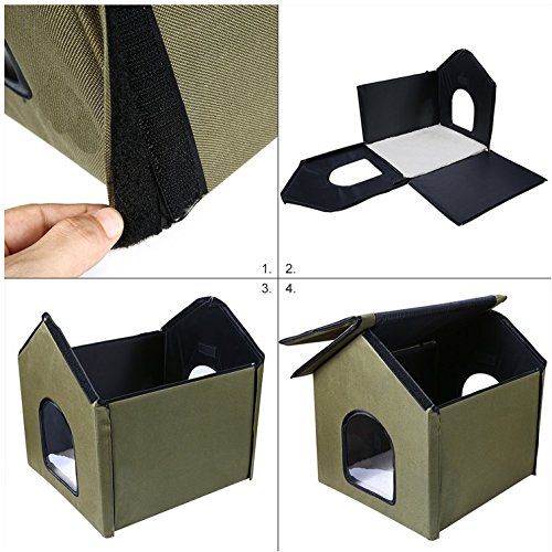 ★ PREMIUM QUALITY: The Pet Peppy's pet house is made from 600 denier nylon canvas to be durable, light, insulated and waterproof to make setup easy for you and rewarding for your pet. Assembles in seconds with Velcro and zippered joints – no tools or extra parts required!