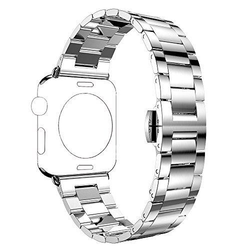 Features:PUGO TOP ultra-thin ( 0.2 cm) solid stainless steel metal classic Apple iWatch Wrist Band with double butterfly button folding clasp for Apple Watch