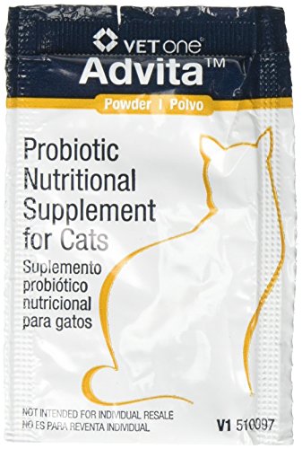 -. Binding : Misc. -. Brand : Vet One -. Department : Vitamins & Supplements,Internal Medications -. EAN : 0313985014376 -. Feature : Contains guaranteed amounts of four different live, active cultures and pre-biotic inulin / Helps maintain a healthy immune system and promotes intestinal microbial balance and health / Is highly palatable for cats in an easy-to-tear package for pet owners / Is micro-encapsulated for better stability. / Contains Vitamins A, E, and C and Taurine. -. Label : Vet One -. Manufacturer : Vet One -. Model : 313985010002 -. MPN : 313985010002 -. PackageQuantity : 1 -. PartNumber : 313985010002 -. ProductGroup : Pet Products -. ProductTypeName : PET_SUPPLIES -. Publisher : Vet One -. Size : 1 gram -. Studio : Vet One -. Title : Advita Powder Probiotic Nutritional Supplement for Cats - 30 (1 gram) packets -. UPC : 313985010002