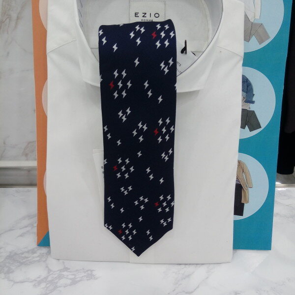 네이비 도트 패턴 중 슬림 타이입니다