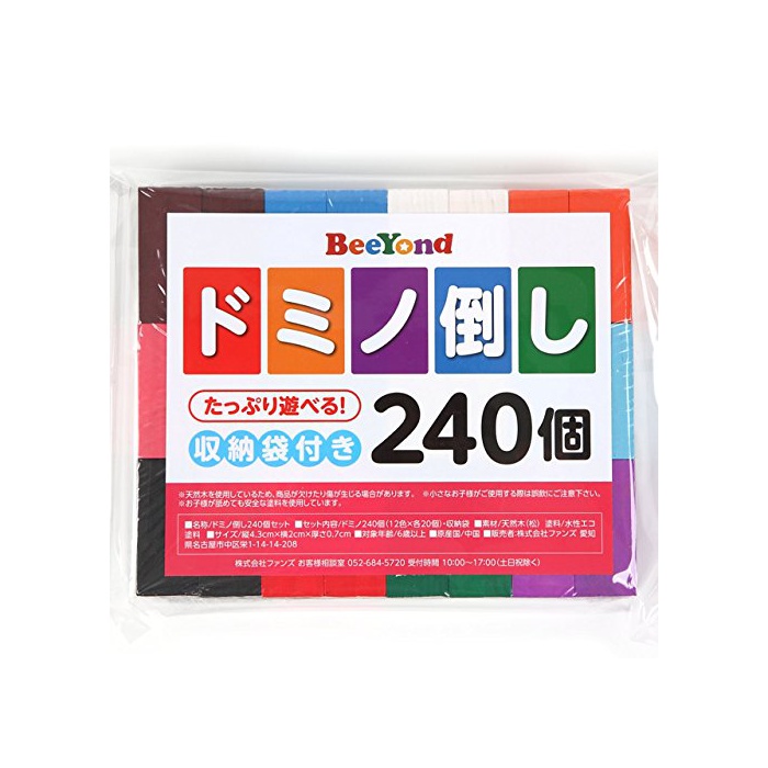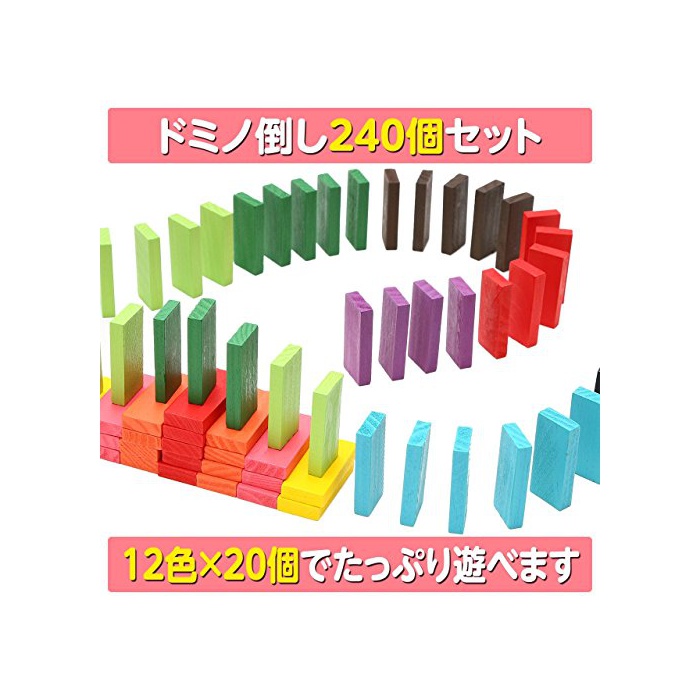 원본상품명: BeeYond ドミノ 倒し 240個 ?納袋 セット 木製 カラフル 知育 43×20×7mm (12色×20個:240個セット) DCW240