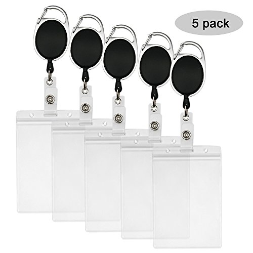 5Packs Heavy Duty ID Card Badge Holder With Retractable Reels Clips,Waterproof PVC ID Card Holder, Vertical Style, Clear, By CYPES