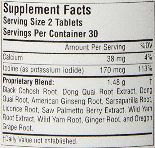 ReleaseDate : 2013-08-10 Studio : Planetary Herbals Publisher : Planetary Herbals Binding : Health and Beauty Product Description Planetary herbals wild yam-black cohosh complex combines some of the most respected botanicals for supporting women through the hormonal transitions of menopause. Primary ingredients, wild yam and black cohosh, are two rich sources of phytoestrogens. Female tonifier. Menopause support. 0