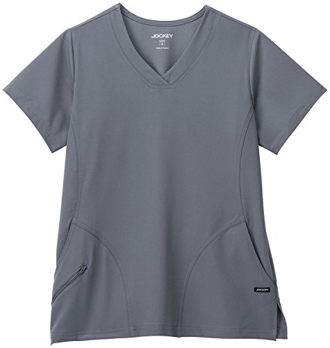 -. Brand : Jockey -. Color : Pewter -. Department : womens -. Feature : Front and back curved side panels create the perfect shaped top / Double needle topstitching for extra strength and durability / Side vents for ease of movement / Two deep rounded edge pockets for maximum storage / Signature zipper pocket keeps valuables secure -. PackageQuantity : 1 -. ProductGroup : Apparel -. ProductTypeName : APPAREL -. Title : Classic Fit Collection By Jockey Women's Side Panel V-Neck Solid Scrub Top Pewter