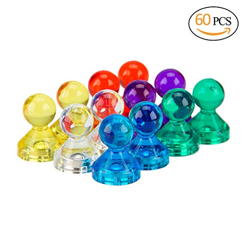 Anphsin 60pcs Large Magnetic Push Pins--Colorful Office Magnets Great for Artwork,Whiteboard,Refrigerator,Map and Any Metal Surface.