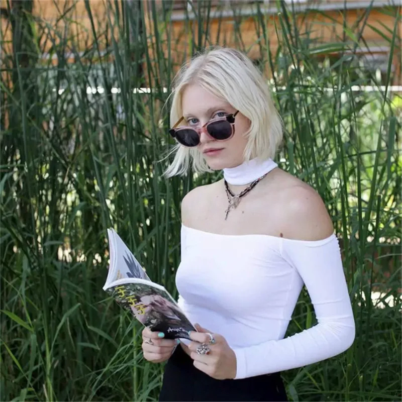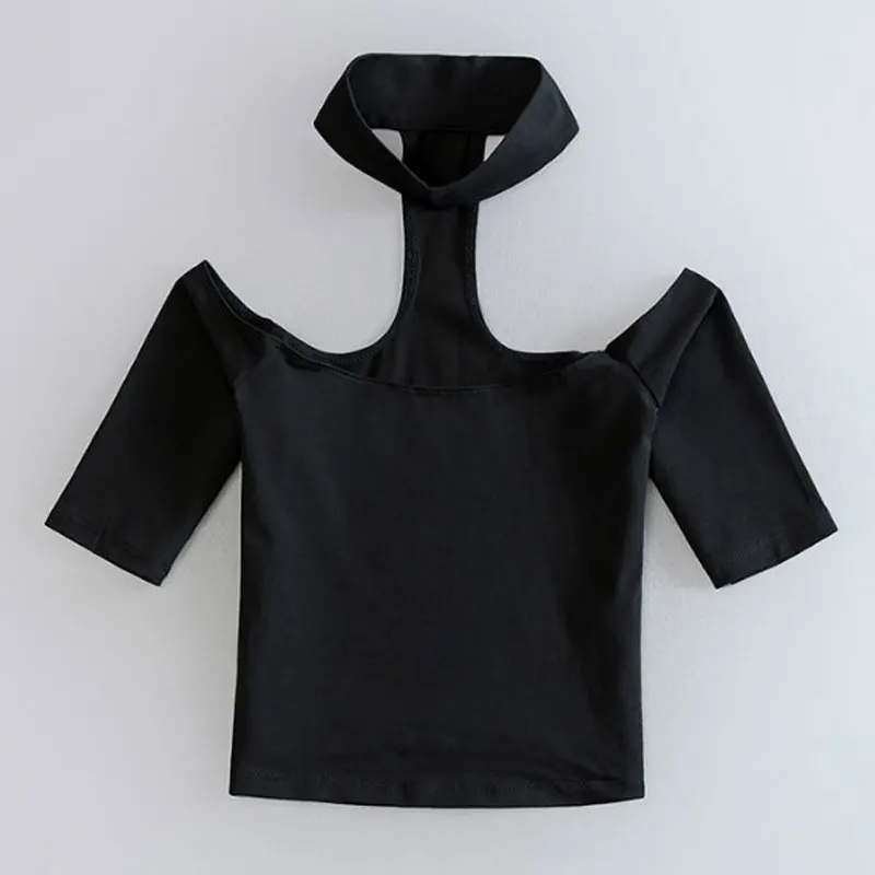 Women Shirts:Casual Knitted Tshirt,Halter Tees