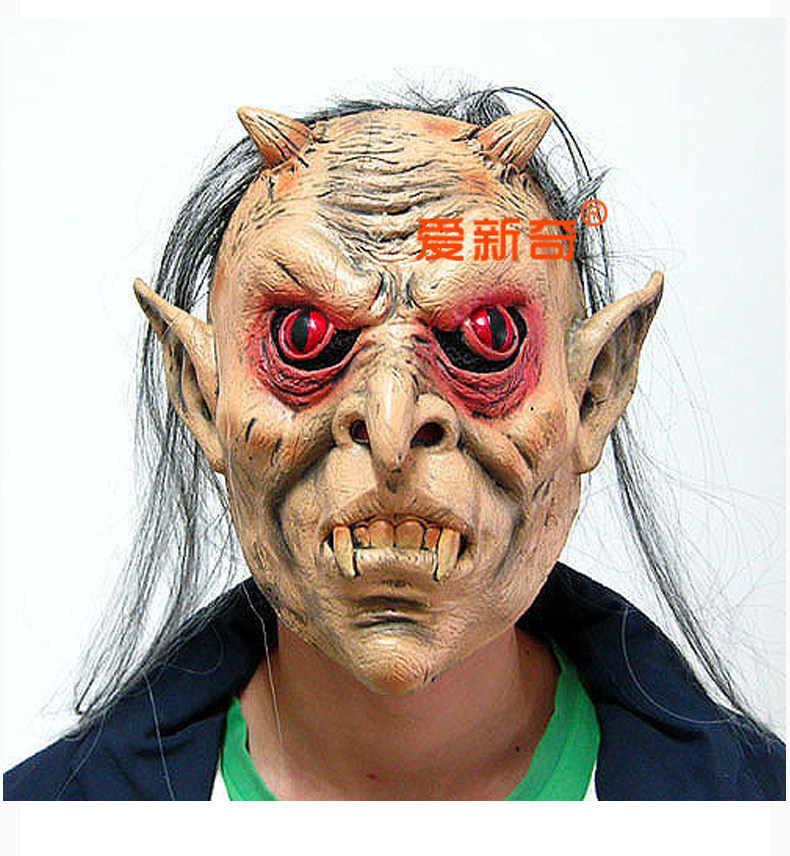 产品描述: 恐怖面具,带在头上很适合, 用于万圣节愚人节化妆舞会酒吧等各种场合。