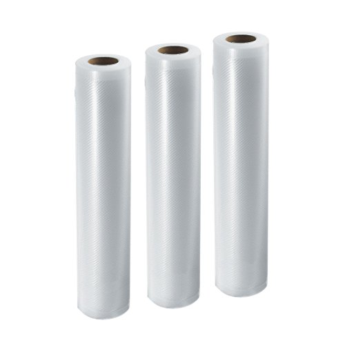 - Sealer bag rolls: Three 11.8 inch by 196 feet rolls, made of food grade plastic material, BPA free.