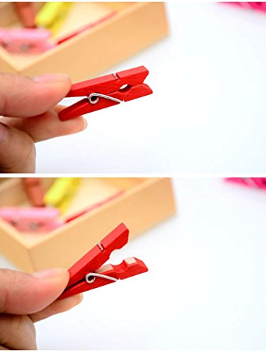 -. Feature : We don't offer the choice of color and style,we will send the product at random,hope you can understand / Light,stable,durable and multiduty. All made of high quality wooden. You can also paint these pegs to the colours you like. / The lovely clip use for photo,paper,clothing,etc. Great for party, crafts, gifts or cards, wedding showers, baby showers, doll house displays. etc. / Material: Wooden. Size:3.5cm/1.4" / Package Content: 50 PCS ( Color Random )