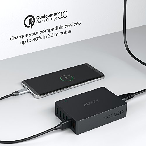 Qualcomm Quick Charge 3.0 Engineered to refuel devices up to 4x faster than conventional charging. Powered by INOV (Intelligent Negotiation for Optimum Voltage) Technology for fine-tuned power output and more optimized charging cycles. Up to 45% more efficient than Quick Charge 2.0 & compatible with a full range of USB connector types, from A to C.AiPower Adaptive Charging Technology Tuned to support healthier battery function and faster USB charging speeds, AiPower intelligently adjusts power output to match the unique charging needs of all your USB powered gear. With up to 2.4A of dedicated adaptive output per Ai USB port, your devices will each receive the safest maximum recharge rate possible. AUKEY EntireProtect Advanced circuitry and built in safeguards to protect your devices against excessive current, overheating, and over charging. Universal Compatibility Designed to work with all popular USB powered devices from iPhones to Android phones, tablets, photography gear, Bluetooth speakers, headphones and more. Whatever USB powered gear you've got, we've got you covered. 24 Month Warranty Whether it’s your first AUKEY purchase or you’re back for more, rest assured that we’re in this together: All AUKEY products are backed by our 24 Month Product Warranty. SpecificationsInput: AC 100-240VOutput (Quick Charge 3.0): 3.6V-6.5V 3A, 6.5V-9V 2A, 9V-12V 1.5A Dimensions: 4.06”×2.80”×1.02”Weight: 7.29 ozFeature