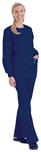 Landau Women's Crew Neck Warm-Up Solid Scrub Jacket Small Patriot Blue