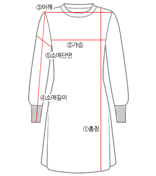 사이즈 ①총장(앞) ①총장(뒤) ②가슴 ③어깨 ④소매길이 ⑤소매단면