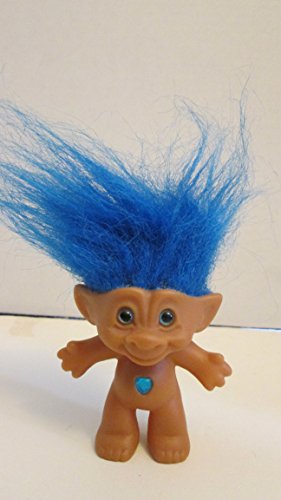 -. Title : Ace Novelty Treasure Troll- Blue Hair Blue Eyes Blue Heart Jewel - 3 Inch