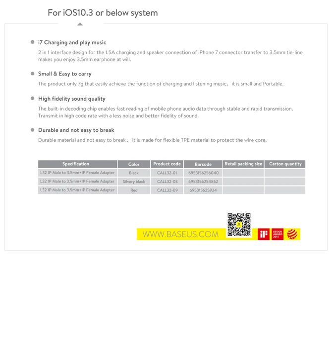Feature3:For iPhone X 10 8 7 Plus Earphone Adapter