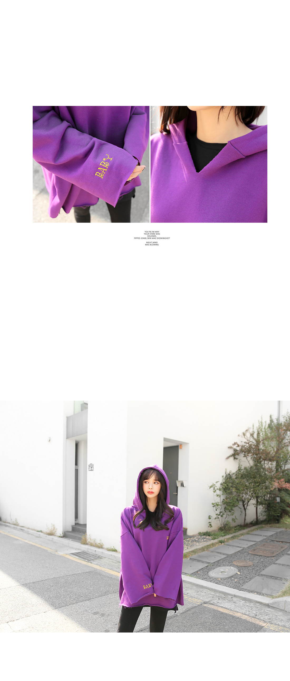 센스있는 레터링이 돋보이는 후드에요. 박시하게 떨어지는 실루엣으로 편안하며, 군살도 쏙쏙- 숨겨주는 아이템이에요! 부분 부분 레터링 디테일을 더해주어, 더욱 센스있게 포인트를 주었어요. 힙을 살짝 덮는 기장으로 나왔어요. 안감이 기모로 이루어져 있어, 좀 더 따뜻하게 즐기기 좋답니다~ 데일리로 편안하게 즐기기 좋은 아이템으로 추천해 드려요. 레드, 퍼플, 블랙 3 가지로 나왔어요. 모델은 퍼플 색상을 착용하였답니다. Free 사이즈로 나와 66에서 120까지 분들께 추천해 드려요.자세한 사이즈는 상세 사이즈 표를 참고해 주세요^^