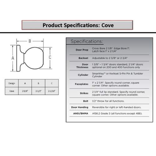 -. Binding : Tools & Home Improvement -. Brand : Kwikset -. Feature : Kwikset Signature Series Product / For use on interior doors where a P.R.Ivacy locking function is required, such as a bedroom or bathroom / Features a fully adjustable latch to fit all standard door preparations / ANSI/BHMA Grade 2 -. Label : Kwikset -. Manufacturer : Kwikset -. MPN : 300CV -. PackageQuantity : 1 -. PartNumber : 300CV -. ProductGroup : Home Improvement -. ProductTypeName : HARDWARE -. Publisher : Kwikset -. Studio : Kwikset -. Title : Kwikset 93001-627 Cove Bed/Bath Knob