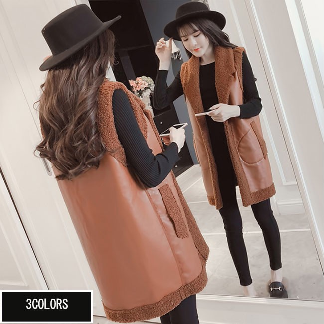 | 商品名 | ロングベスト puジャケット 袖なし レディース 裏起毛 2way フリースベスト puベスト 切り替えベスト フェイクレザーベスト ワンボタン 秋冬 2018春冬新作 |