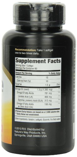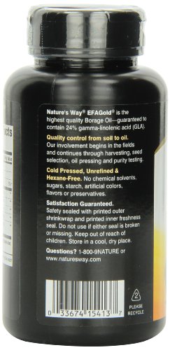 -. Binding : Health and Beauty -. Brand : Nature's Way -. Label : NATURE'S WAY -. Manufacturer : NATURE'S WAY -. PackageQuantity : 1 -. ProductGroup : Health and Beauty -. ProductTypeName : HEALTH_PERSONAL_CARE -. Publisher : NATURE'S WAY -. Studio : NATURE'S WAY -. Title : EFA Gold Borage Oil (1300mg)