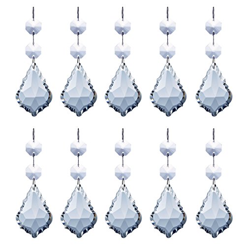 MISHIN Clear Crystal Maple Leaf Shaped Pendants with Octagon Beads Chandelier Prisms Hanging Drops Ceiling Light Decorations Parts,3.9 Inch,Pack of 10