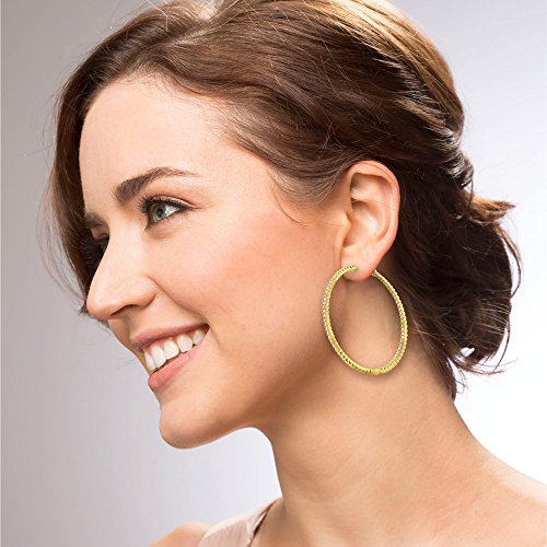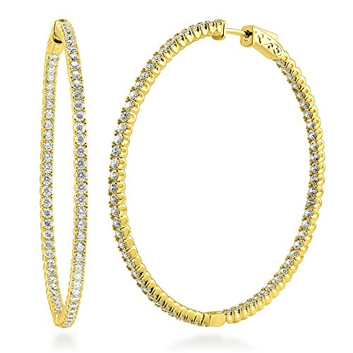 -. Title : BERRICLE Yellow Gold Plated Sterling Silver Cubic Zirconia CZ Fashion Inside-Out Hoop Earrings 2.2"