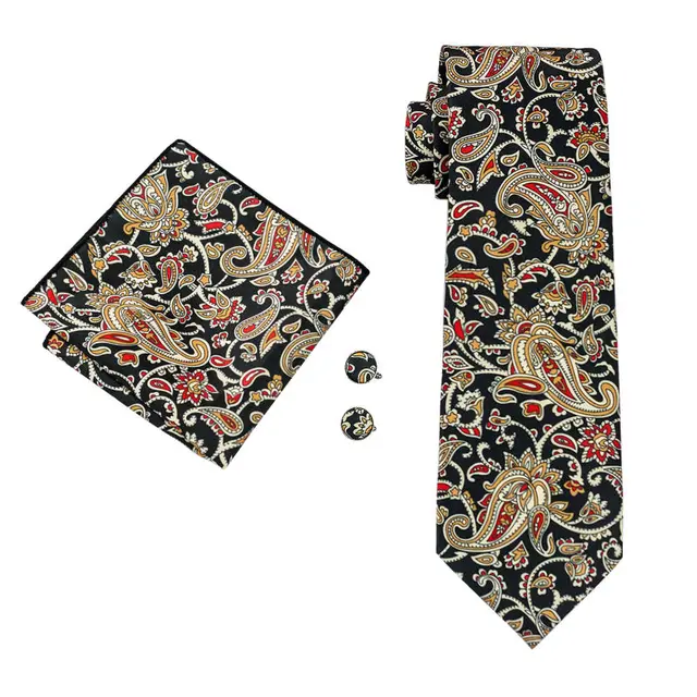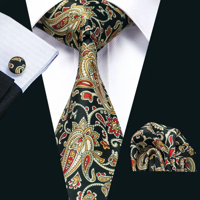 LS-1254 새로운 도착 패션 실크 넥타이 고품질 브랜드 디자인 넥타이 손수건 커프스 세트 웨딩 파티