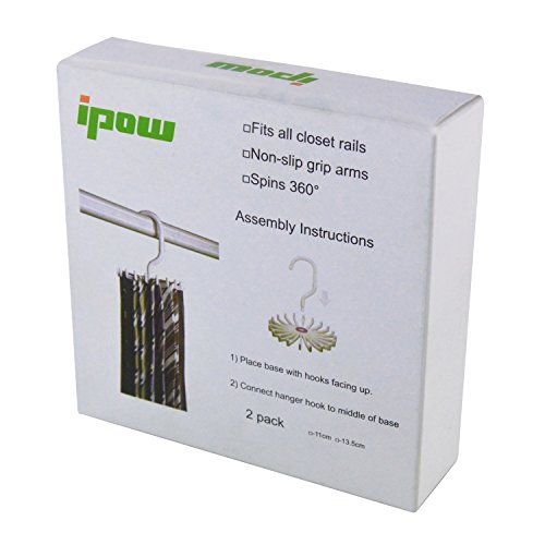 - Feature : 20 Hooks can Hold ties or belts or other scarves accessories / Fingertip spinning provides for easy selection / Fits over closet rod and requires no installation.Anti-slip arms hold ties in place / Two PCS , you can share with your family.Accessory only !Tie not included / ATTENTION BUYERS ! Buyers please be aware and do not buy counterfeit items from other different sellers as it will result in a bad quality product that will not be covered by our warranties of Ipow Official store.