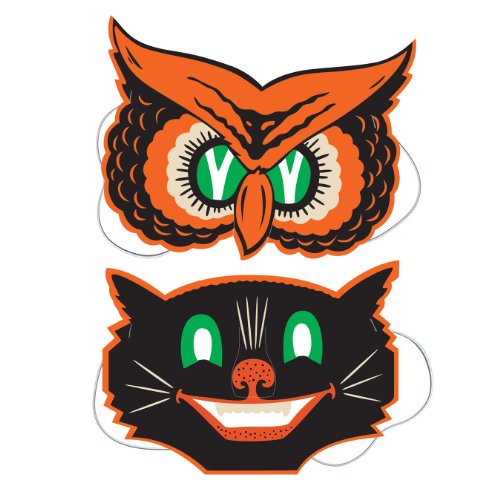 Beistle 2-Pack Owl and Cat Masks, 9-1/2-Inch