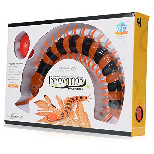 1.Function: SUPER REALISTIC GIANT SCOLOPENDRA,FAST MOVING AND RATTLING TAIL,FLEXIBLE MOVING BODY AND FASHING EYES,TURN LEFT AND RIGHT,DIRECTION ADJUSTMENT,3 DIFFERENT FREQUENCIES AVAILABLE FOR PLAY. 2.Package include: 1 X Scolopendra 1 X Transmitter 1 X USB charge wire 3 X 1.5V (AG13)Battery 3.Note: Due to the difference between different monitors, the picture may not reflect the actual color of the item. 0 |