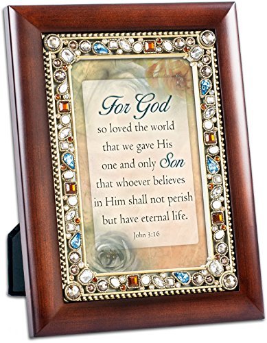 Cottage Garden For God So Loved the World Religious Jeweled 4" x 6" Photo Picture Frame Inspirational Art Work