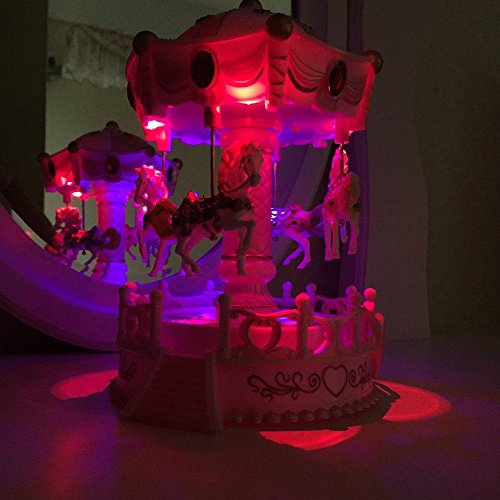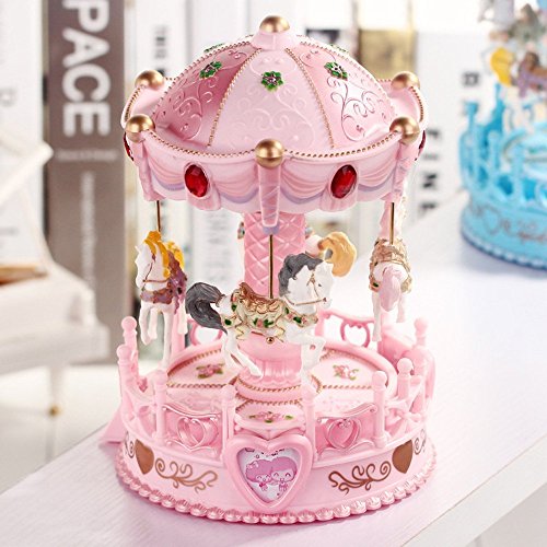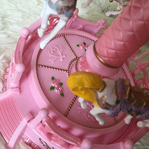 Title : Alytimes Carousel Music Box,4-Horses Rotate and Automatic Lifting,Korea Romantic Park Design,Pink