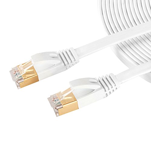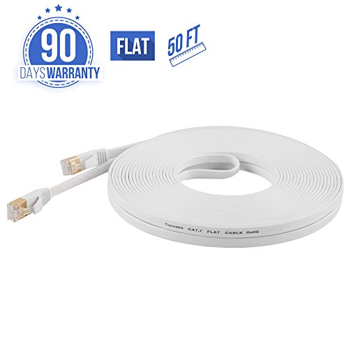Cat7 Ethernet Cable 50 Feet White, TOPSCABLE CAT 7 Shielded LAN Network Patch Flat Internet Cable with Gold-Plated RJ45 Connectors - for Router LAN Network, ADSL, IP Cameras, PS4, X-Box