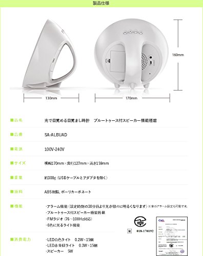-. Feature : 【安心の国内メーカー】「一年間の保証書付き」 光で起きる 目覚まし時計 2017年最新モデル(製造は中国産となります。) / 【ブルートゥース機能付きスピーカー搭載】アラーム機能だけでなく、音楽も聞ける!さらに高音質の性能! / 【FMラジオ機能搭載】76~108HMzの周波数を自動取得!高音質にもこだわった快適視聴が可能! / 【6色のライト機能】インテリアとしてもお使いいただけると、6色の光を搭載しています!これ一つで部屋もオシャレに! / 【使いやすく改善改良】アダプタのUSBソケットを2つしたり、ケーブルの長さを2mに改良したりし使いやすさを追求しました!