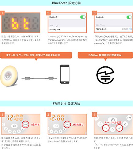 -. Title : 【安心の国内メーカー/1年保証付き】ADone 目覚まし時計 ブルートゥース機能 光で起きる Bluetooth スピーカー機能 LED アラームクロック Bluetooth 置き時計 スヌーズ機能 FMラジオ機能 6色ライト インテリア 小物 オシャレ 高性能 高音質 音楽 ベッドサイドランプ アドワン