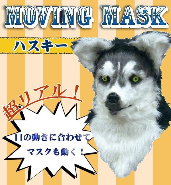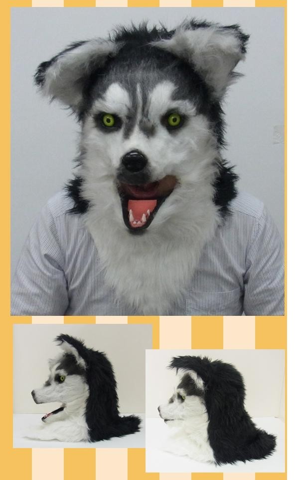 | 頭からすっぽり被り、自分の顎をマスクの顎に固定することでマスクが連動し、喋るだけで口が動きます!その様子はまるで本当にハスキーが喋っているよう♪ハロウィンやイベントなどで大注目間違いなしのムービングマスクです★ |
