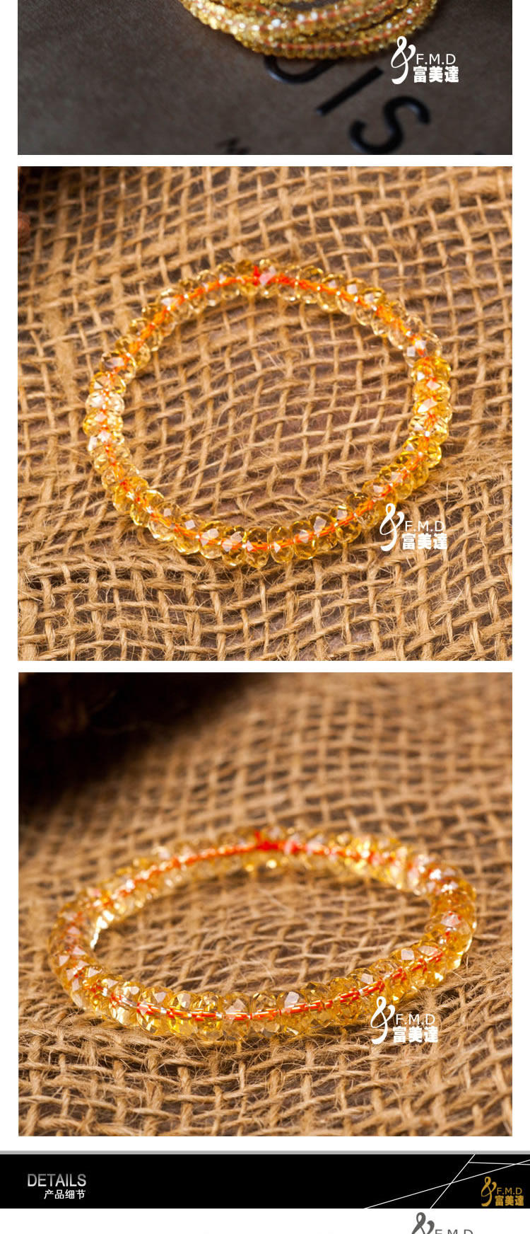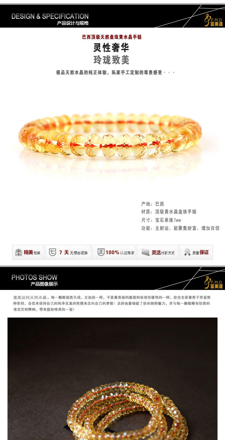 【名称】巴西天然灿黄晶手链刻面盘珠7mm