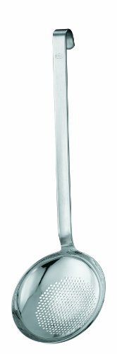 One piece wonders, these Rosle kitchen utensils with hooks are seamless being manufactured all in one piece and designed to tackle the most demanding kitchen jobs. Set at an ergonomic angle perfect for the task in hand, the handles are 5/8" wide and molded to fit the shape of the hand with the rounded edges. The transition from highly polished functional part to matte finish handle displays classical style. Perfected with a practical hook for storage in the "open kitchen" system.Feature
