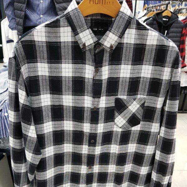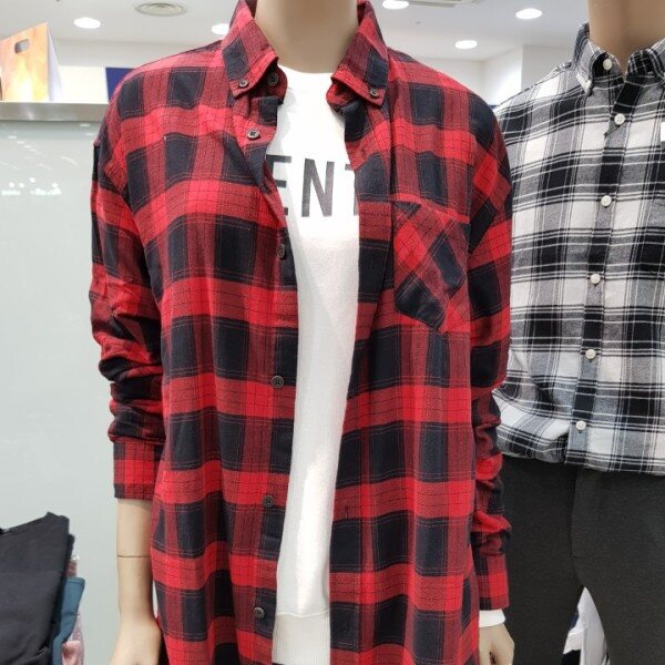 유니)뒷판 아트윅 롱체크셔츠