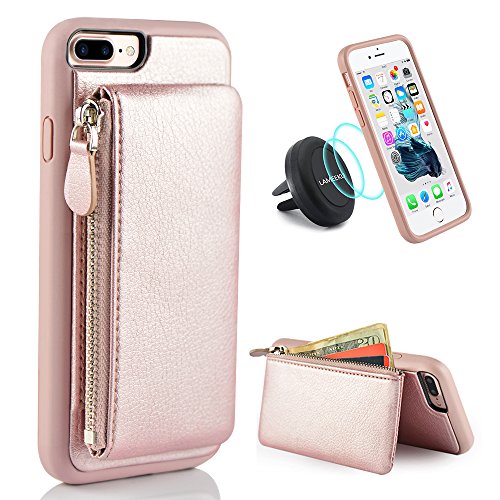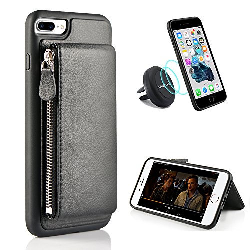 *Detachable iphone 7 Plus wallet case with magnetic sheet, can be used for magnetic stand mount.