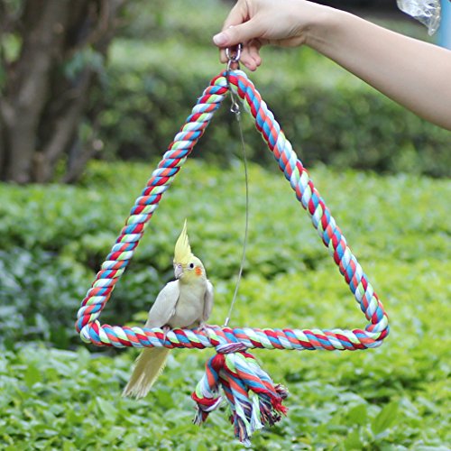 --Big size fitted for all kinds of birds.Small medium or big.parakeet,Cockatiel,budgies etc. --Make it easier when you take your birds pet out. --Sturdy and made of high quality cotton with stainless steel. --Great decoration and gift for your bird pet cage. Package included:1 x Bird Swing
