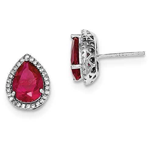 ICECARATS DESIGNER JEWELRY 925 STERLING SILVER CREATED RED RUBY CUBIC ZIRCONIA CZ POST STUD BALL BUTTON STUD EARRINGS