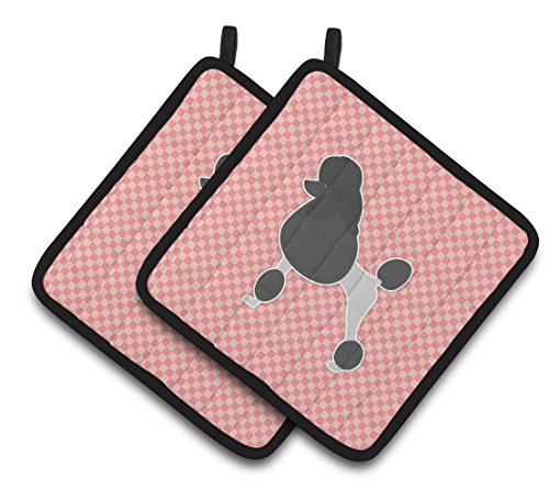 Caroline's Treasures Poodle Checkerboard Pink Pair of Pot Holders BB3639PTHD, 7.5HX7.5W, Multicolor