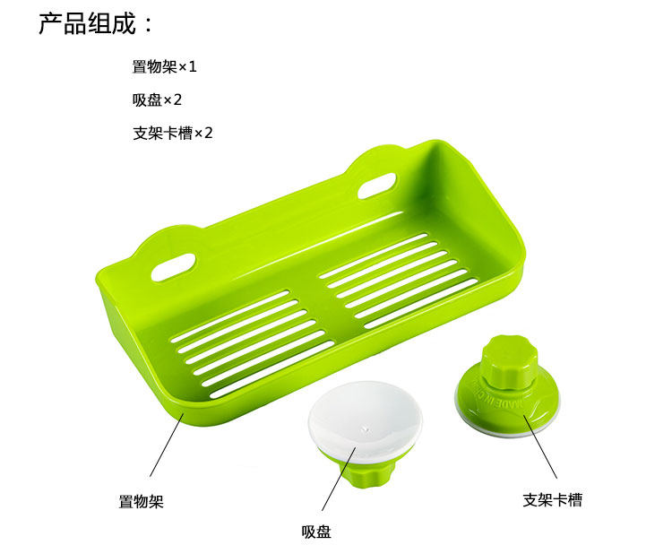 Description: Suction wall multi-purpose rack, double-suction plate design, adsorption stable, strong load-bearing capacity.