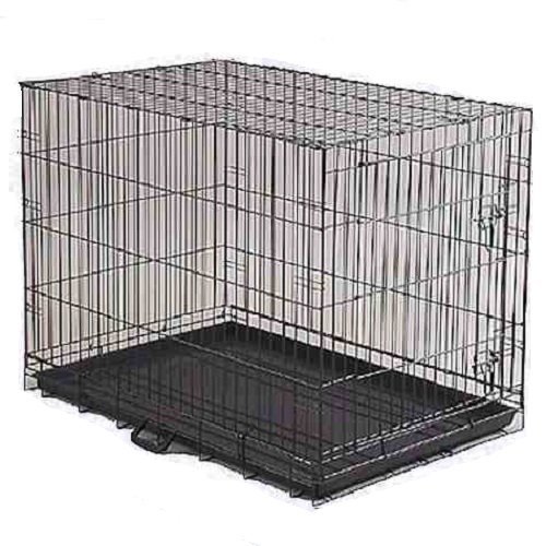 -. Feature : Measures 24" L x 17" W x 20" H / Side Door for easy access to pet 9.5" x 15" / Removable Plastic Tray / Folds for easy storage or travel / Finish may vary from Galvanized Metal to Black Finish